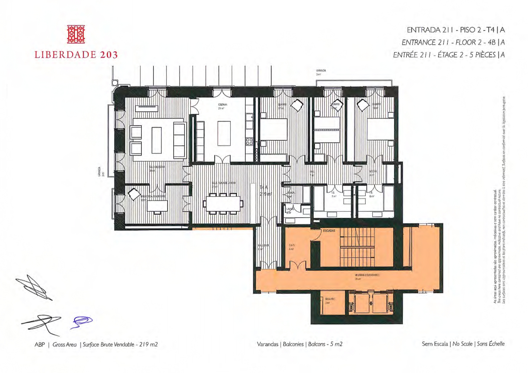 Apartamento T3 + 1 com área bruta privativa de 219 m2 e pé direito alto, inserido em prédio de charme com elevador, concierge e segurança 24 horas, construído em 2017 com projeto do Frederico Valsassina Arquitectos, na Avenida da Liberdade esquina com a Rosa Araújo em Lisboa.